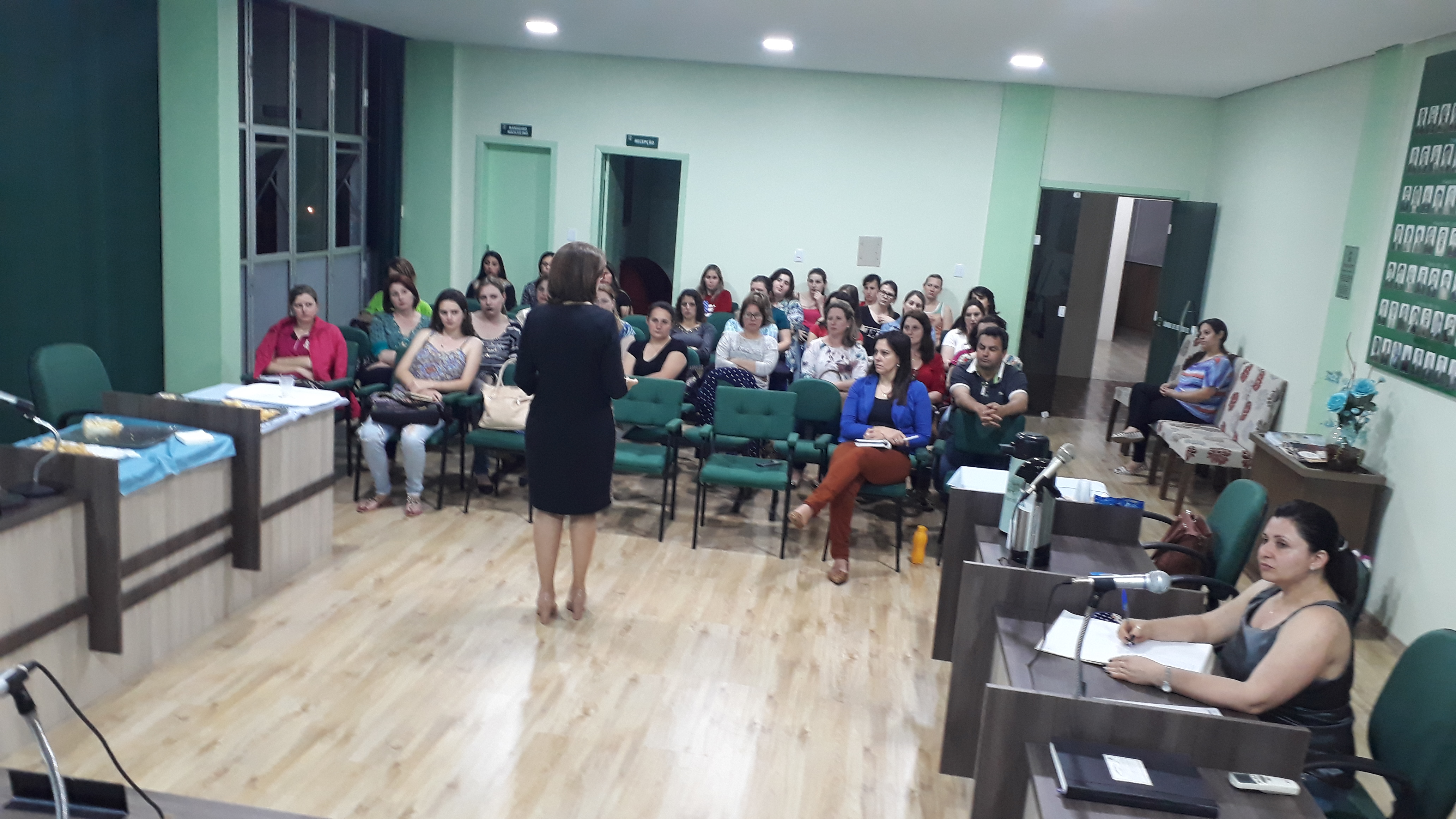 Estiveram presentes, nesta edição do curso de formação continuada, um bom número de docentes da municipalidade que acompanharam toda a explanação da palestrante, e também puderam questionar vários pontos em que haviam dúvidas sobre o tema.