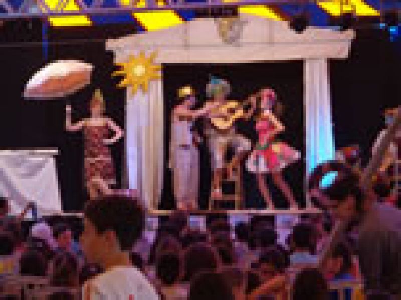 Participação dos alunos do "Grupo Aquarela" da Escola Municipal Albino Calgaroto, na Feira do Livro em Lagoa Vermelha. Na ocasião assistiram a Peça Teatral "A Família Gentil".