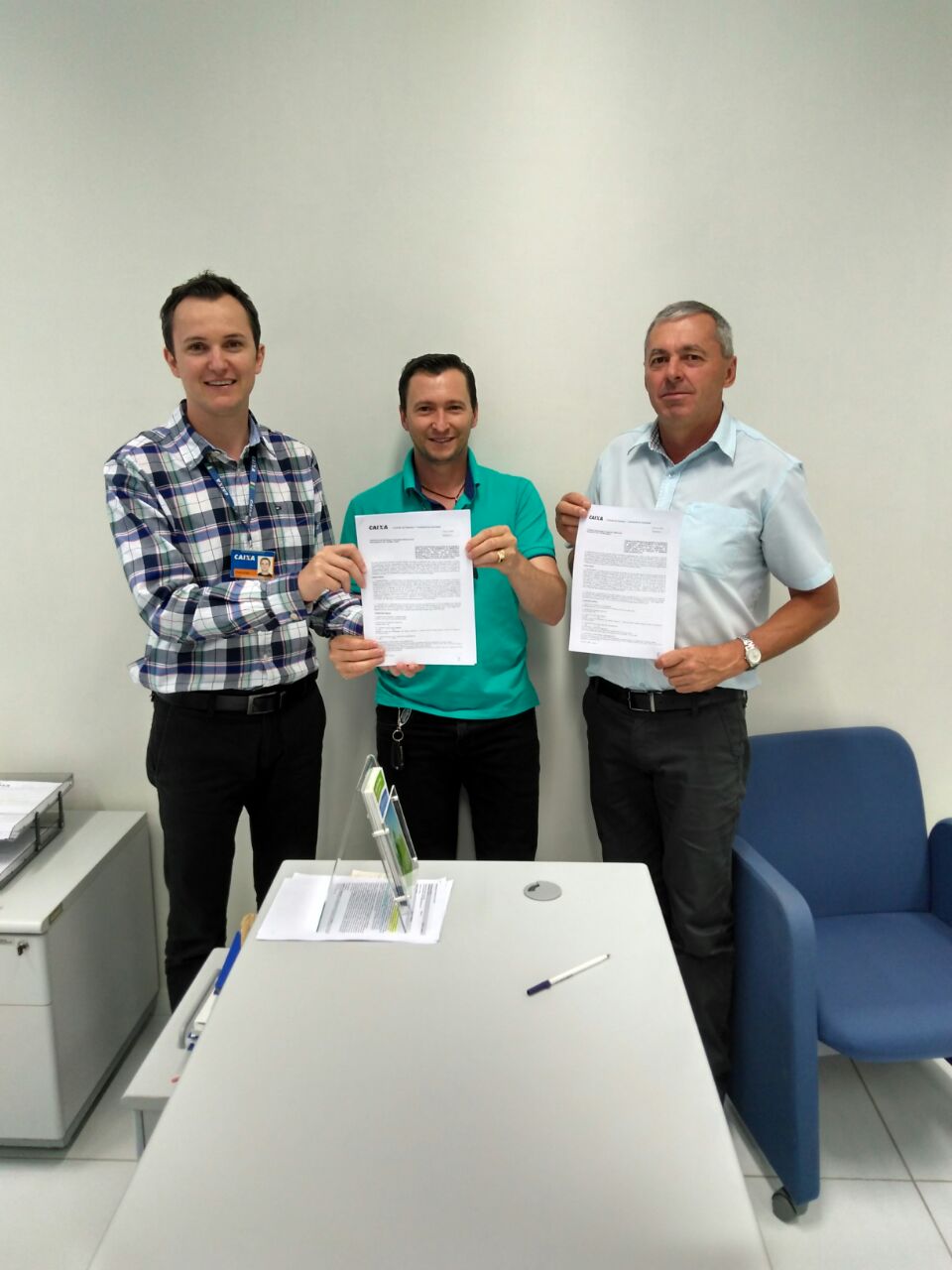 Em ato, também realizado nesta segunda-feira, 11/12/2017, na agência da Caixa Econômica Federal, em Sananduva, o prefeito Edivan Fortuna e o vice-prefeito Luiz Ângelo Deon assinaram o contrato de repasse, objetivando a execução de ações relativas à ação fomento ao setor agropecuário.