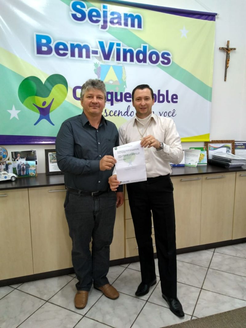 O prefeito Edivan Fortuna esteve reunido com o vereador Odailson Pasinato, nesta terça-feira, dia 12/06/2018, oportunidade em que o vereador confirmou ao prefeito uma emenda no valor de R$ 125.000,00, de origem do deputado federal Covatti Filho.
