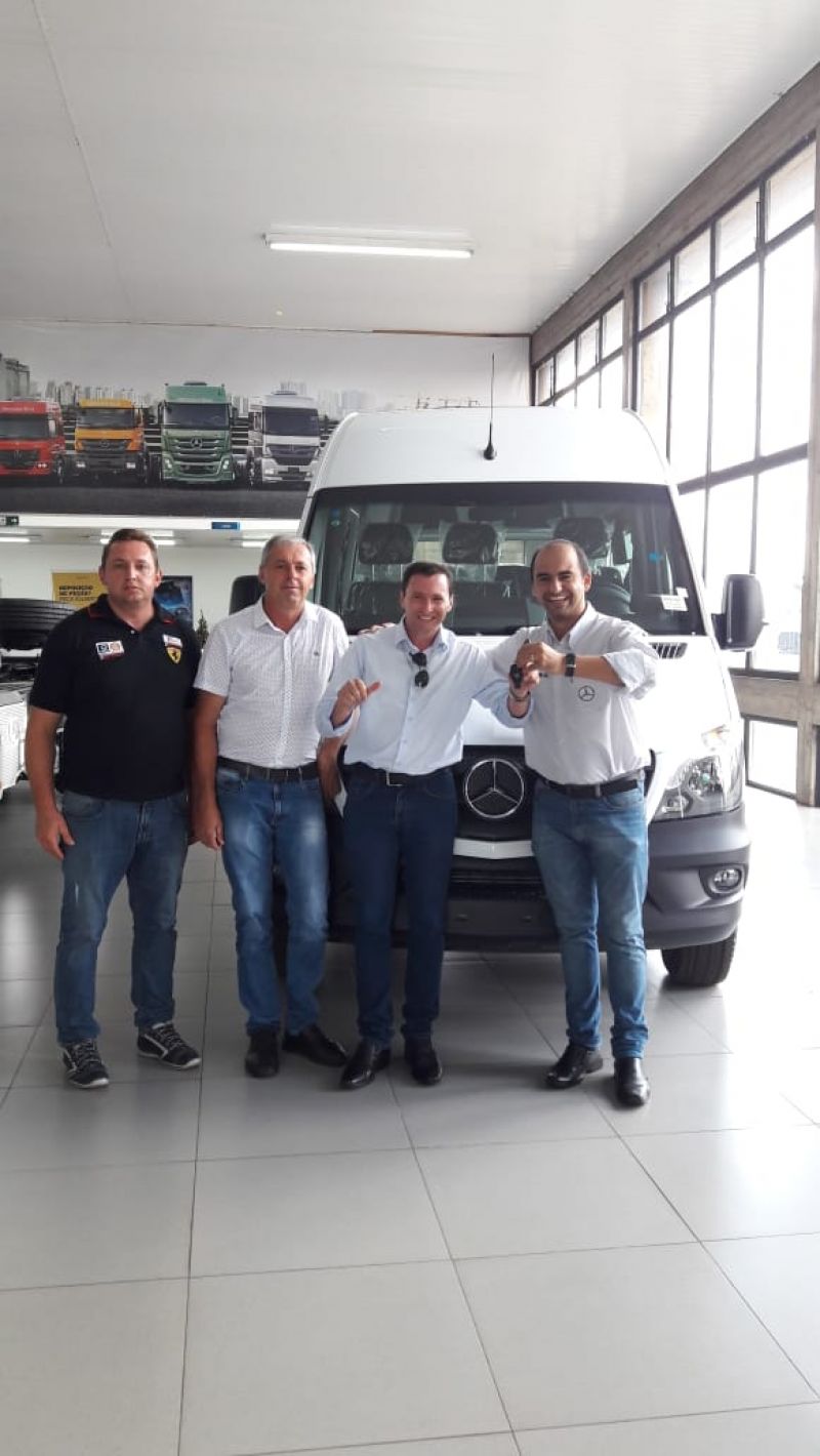 O prefeito Edivan Fortuna, acompanhado do vice-prefeito Luiz Ângelo Deon e do motorista Eder Pasinato estiveram na agência da Mercedes Bens em Erechim, onde foram buscar uma Van, zero quilômetro, que foi adquirida para a Secretaria de Saúde do município.