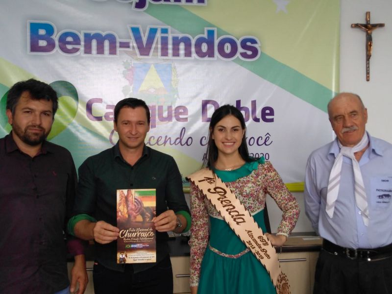 O prefeito Edivan Fortuna recebeu nesta segunda-feira, dia 07/01/2019, uma comitiva do município de Lago Vermelha, composta pelo vice-prefeito Clóvis Neckel, do tesoureiro do CTG Alexandre Pato Oscar Franciscon, da primeira prenda do CTG Eduarda Gomes da Silva e do Assessor de gabinete Paulo Montovani, ocasião em que formalizaram o convite para o chefe do executivo caciquense a participar da programação da 19ª Festa Nacional do Churrasco e o do 5º Rodeio Crioulo Internacional de Lagoa Vermelha.