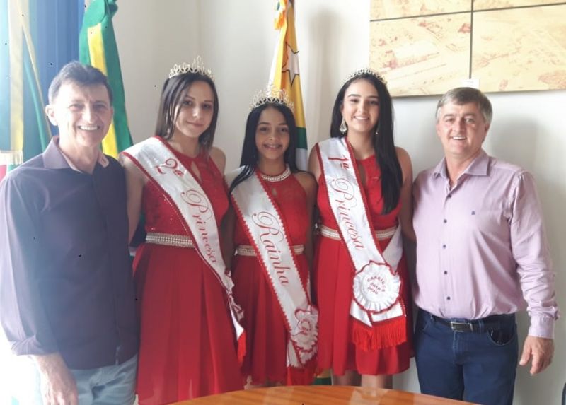 Uma comitiva do município de Caseiros, formada pelo Prefeito Léo Cesar Tessaro e as soberanas do município, Rainha Yana Martins, 1ª Princesa Amanda do Amaral e 2ª Princesa Emili Bresolin visitou o Prefeito Edivan Fortuna nesta quarta-feira, dia 24/04/2019.
