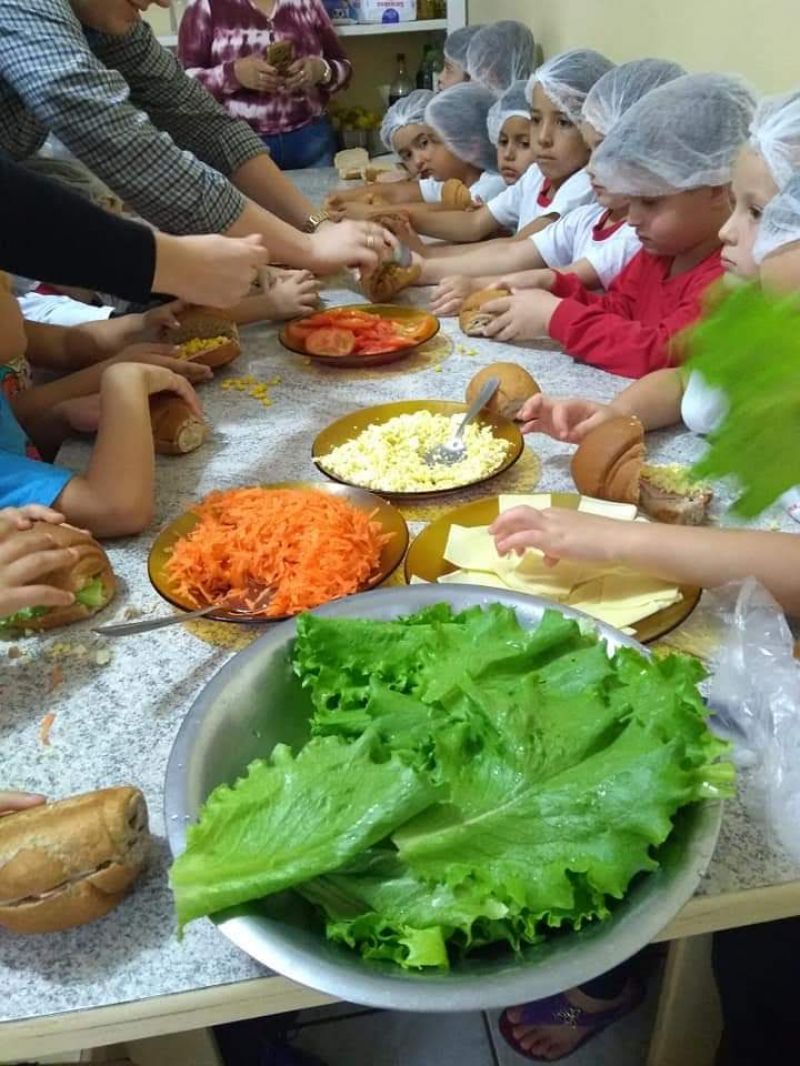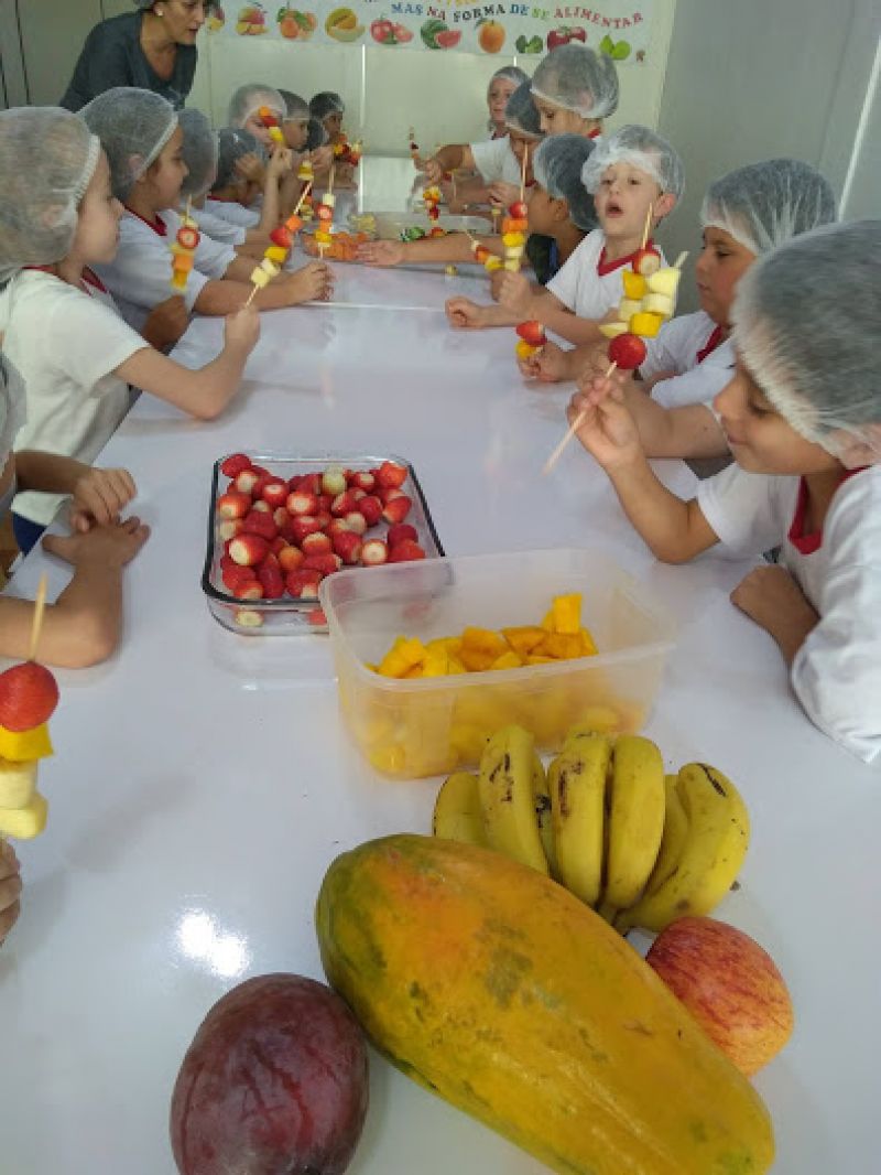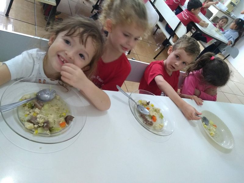 Nos meses de março e abril, foram realizadas palestras e atividades como o espetinho de frutas, o sanduiche natural da Maricota e foi incluído no cardápio da Educação Infantil a sopa de agnolini com legumes.
