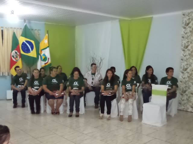 A primeira turma de alunos do Programa Alfa, em Cacique Doble, se formou na noite desta terça-feira (07), no Lions Clube. No total, 15 alunos receberam o certificado de conclusão do curso. O projeto voltado para adultos que não sabem ler e escrever ou que abandonaram a escola nas séries iniciais é uma parceria com a Secretaria de Assistência Social de Cacique Doble e Sindicato dos Empregadores Rurais de São José do Ouro através do Serviço Nacional de Aprendizagem Rural (SENAR/RS).