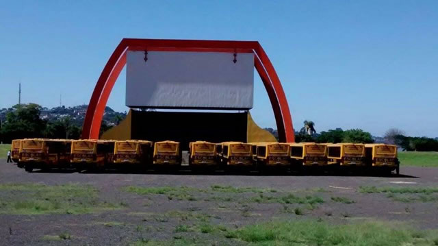 Os ônibus foram distribuídos de acordo com o tamanho da área municipal e com o número de alunos transportados.
