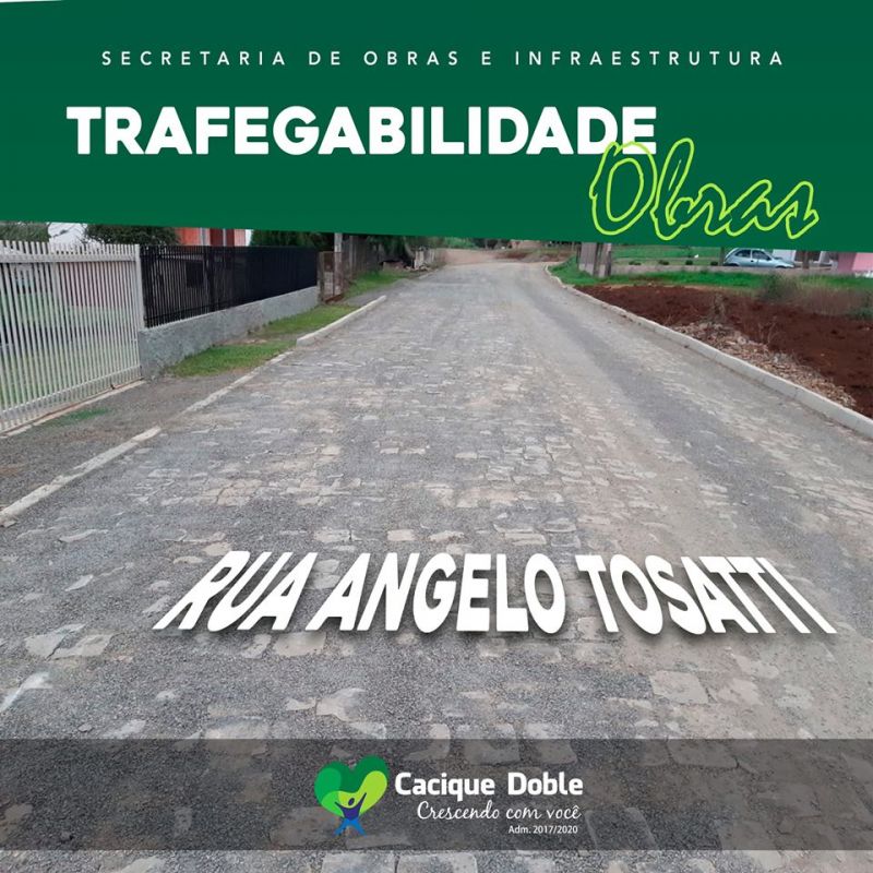 Na última semana, a Secretaria de Obras finalizou o calçamento em um trecho da rua Ângelo Tosatti. A próxima fase da obra fará melhorias em outra parte da rua com o mesmo serviço de calçamento.