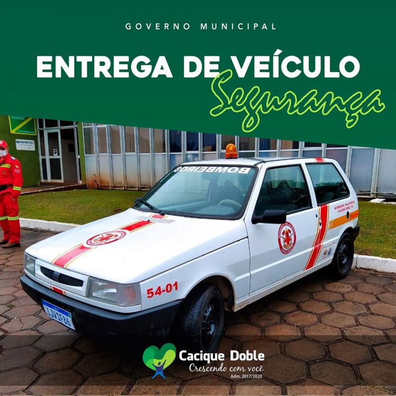 Na tarde desta terça-feira, o Prefeito Municipal, Edivan Fortuna, fez a entrega oficial das chaves do veículo Fiat Uno ano 2001 para a Associação dos Bombeiros Voluntários de Cacique Doble. O veículo foi uma doação da Secretaria de Agricultura do Estado do RS conquistado através dos esforços do Vereador Odailson Pasinato - PP e do Secretário da Agricultura, Pecuária e Desenvolvimento, Covatti Filho. No ato da entrega, o Prefeito Municipal agradeceu o esforço do vereador na aquisição do veículo e enalteceu a dedicação do Diretor, Inácio Rosin, do Comandante, Rafael Mezzalira, e dos demais voluntários que já iniciaram uma prestação de serviço para com a vida das pessoas.