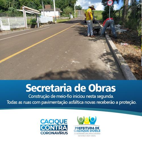 A semana iniciou com trabalhos de estruturação com a construção do meio-fio em toda a extensão das ruas que receberam pavimentação asfáltica no ano de 2020. Visando a proteção da pavimentação, a Prefeitura, através da Secretaria Municipal de Obras iniciou a construção dos meios-fios para proteção contra a erosão e melhor escoamento das águas das chuvas.