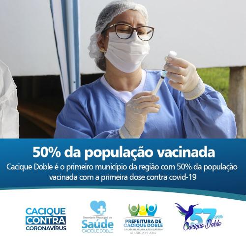 Nesta semana o município de Cacique Doble atingiu o percentual de 50,5%, de pessoas imunizadas com a primeira dose da vacina contra o Covid-19.