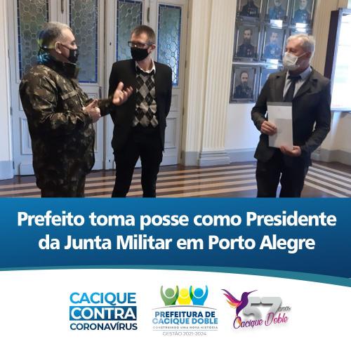 Nesta última terça-feira, 25 de maio, em ato simbólico, o prefeito de Cacique Doble, Luiz Ângelo Deon (Zico), foi empossado como presidente da Junta Militar, numa cerimônia cívico-militar, realizada em Porto Alegre. O prefeito fez o juramento e assinou o Compromisso de Posse, que é de fazer cumprir deveres relativos ao serviço militar, obedecendo a Lei do Serviço Militar.