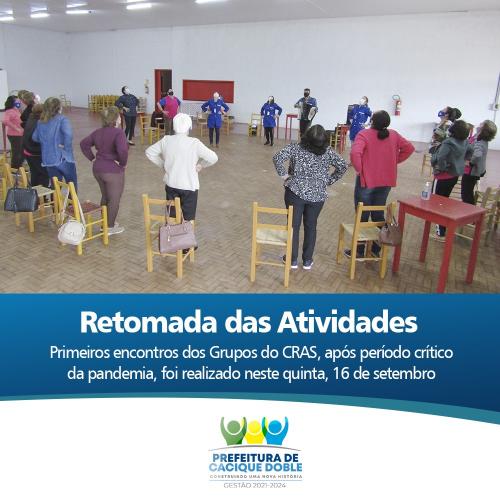 O retorno dos Serviços de Convivência do CRAS foi comemorado nesta segunda quinzena de setembro. De forma reduzida e seguindo todos os protocolos aprovados pelo COE municipal, os grupos puderam retornar com segurança nesta semana graças ao planejamento feito pela equipe do CRAS e Secretaria de Assistência Social.