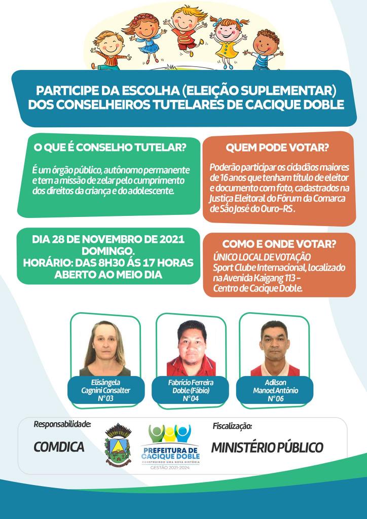 Participe da eleição suplementar para a escolha dos Conselheiros Tutelares de Cacique Doble.