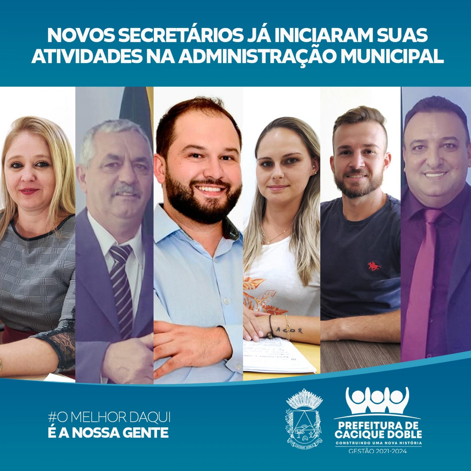 O Prefeito Municipal de Cacique Doble, Luiz Ângelo Deon, nomeou neste mês, os novos secretários que compõe seis pastas administrativas. Cláudio Fortuna, ex-vereador, assumiu a Secretaria de Obras enquanto o também ex vereador Joacir Zaparoli, comanda a partir deste mês a secretaria de Urbanismo. A Secretaria de Agricultura já está sob os comandos do Técnico Agrícola Lucas Gelain. No setor da Secretária de Administração, a nomeada é Luciane Cagnini, que estava anteriormente compondo a equipe de Saúde do município. Gustavo Calgaroto deixa a Secretaria de Administração e passa para a Secretaria da Fazenda, a princípio, até o mês de abril de acordo com o Prefeito. E, pensando em trabalhar mais próximo dos empresários do município, a Secretaria da Indústria e Comércio foi reativada sob os comandos da Secretária Débora Modena. O executivo também conta com o Chefe de Gabinete Nério Pessoa, nomeado pelo prefeito.