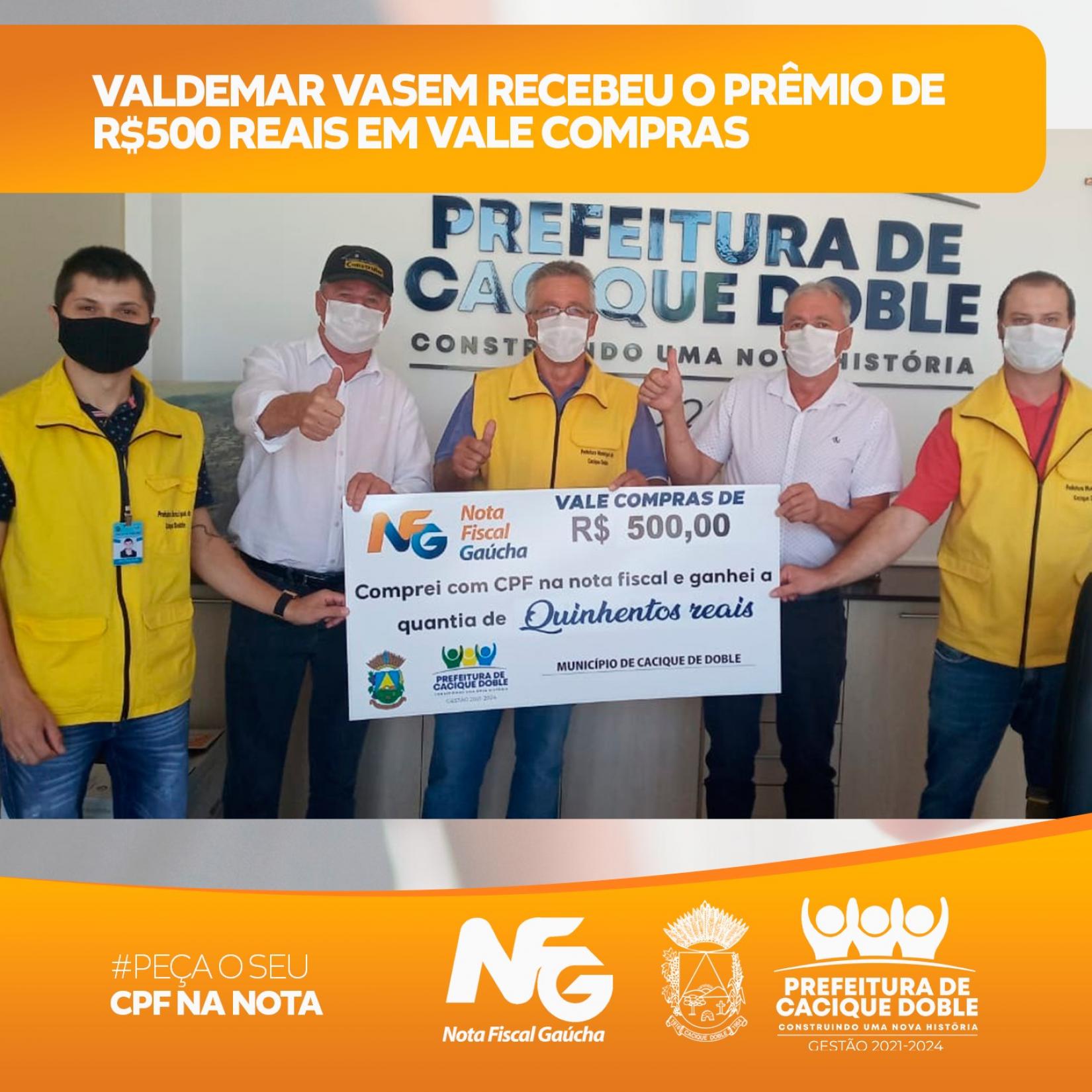Peça o seu CPF na Nota Fiscal durante suas compras no comércio local. Você do sorteio de prêmios no programa Nota Fiscal Gaúcha que somam até R$700 mil reais em dinheiro, concorre a prêmios no Receita Certa, e ganha desconto no IPVA além de participar de sorteios em vale compras de R$500,00 no comércio local.