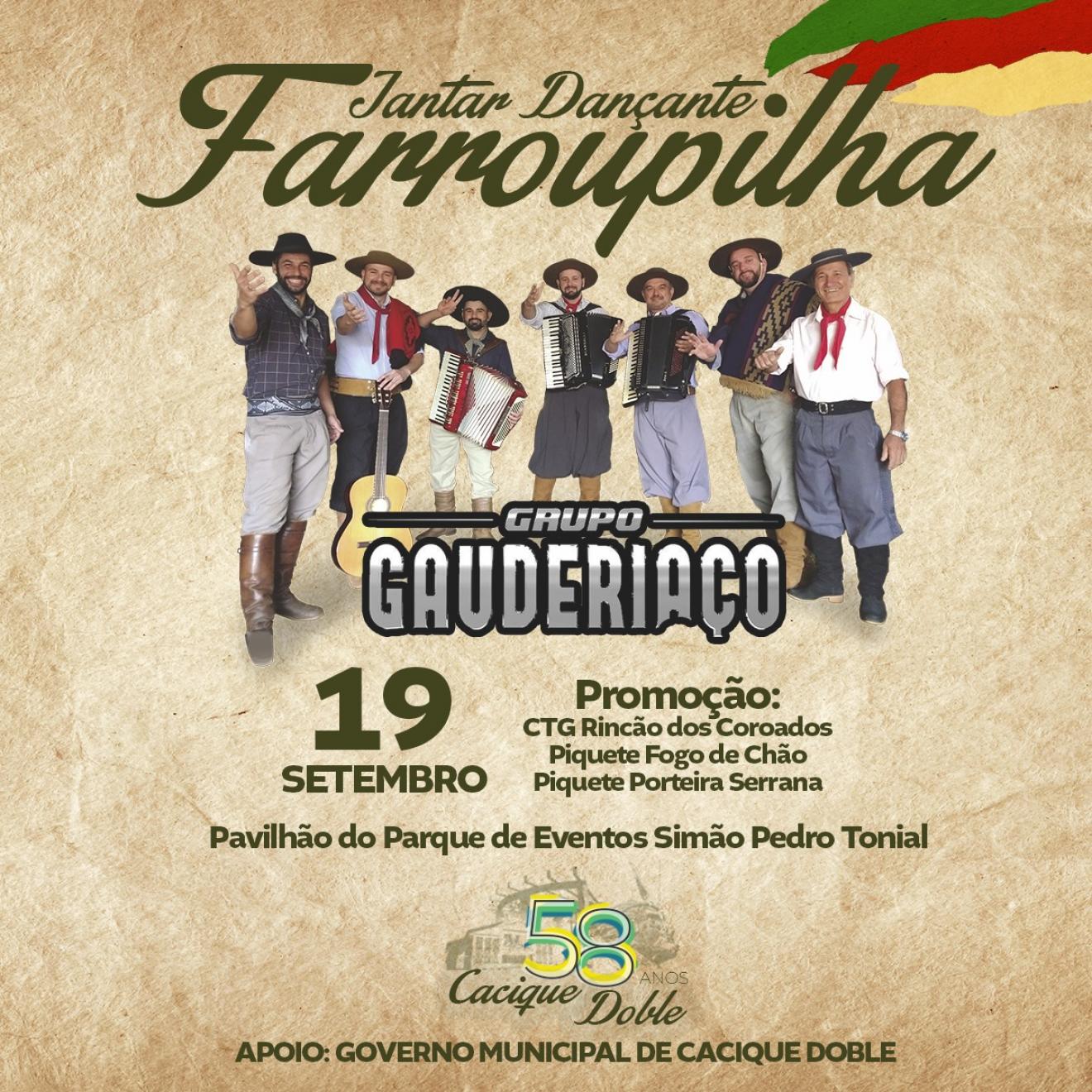 Vamos comemorar a Semana Farroupilha com mais um evento que reverencia toda nossa cultura gaúcha! Um evento promovido pelos CTG's e Piquetes do nosso município, trabalhando em conjunto para realizar um dos maiores eventos tradicionais e servir à melhor maneira a comunidade caciquense e visitantes.