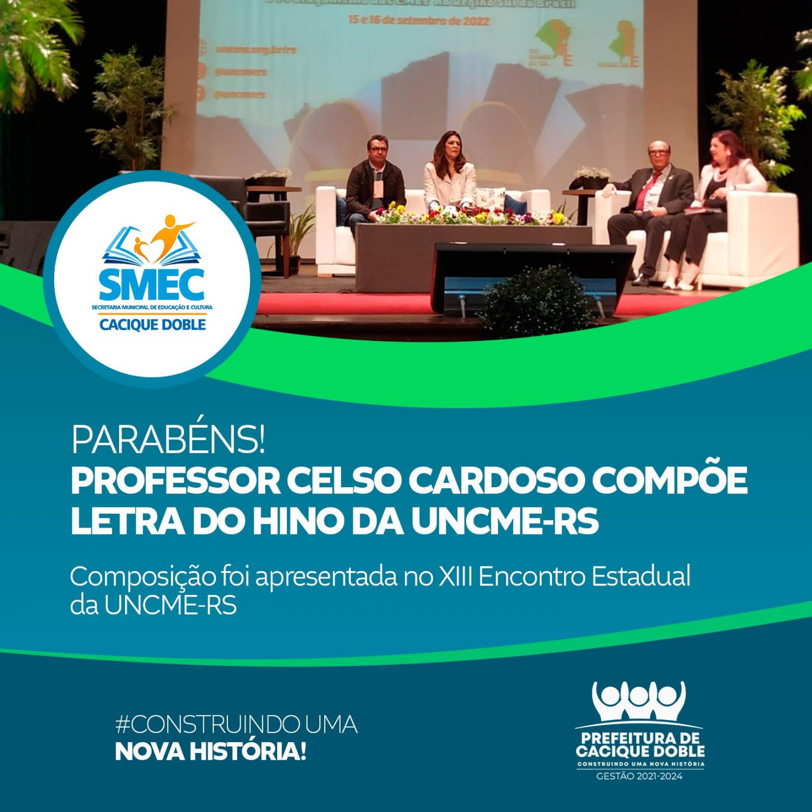 Comemorado de forma especial pela Educação do município, porque o Professor Celso Cardoso foi o compositor da letra do Hino da UNCME-RS e toda a criatividade da composição foi apresentada neste evento.