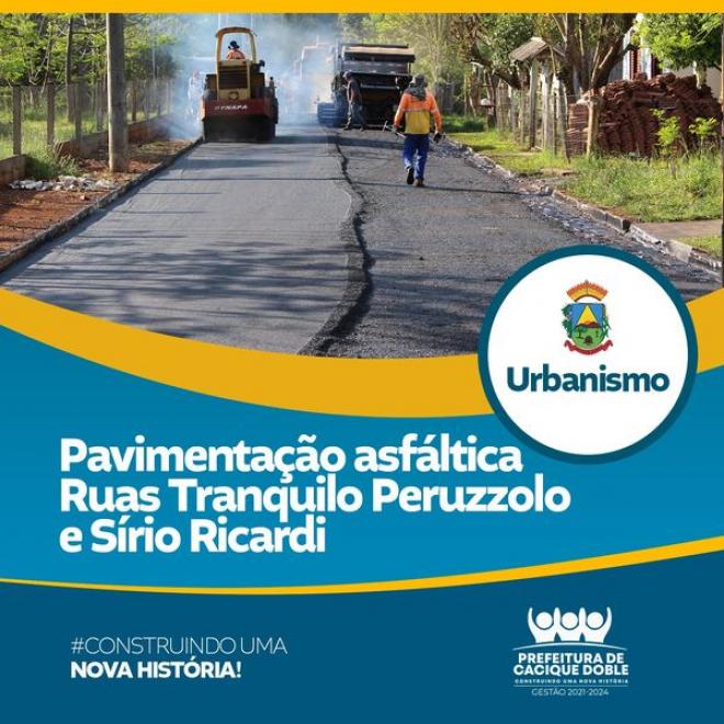 As obras de pavimentação de Cacique Doble avançaram e neste final de mês de setembro chegaram a rua Sírio Ricardi e Vicente Tonial, no Bairro Nossa Senhora da Saúde.