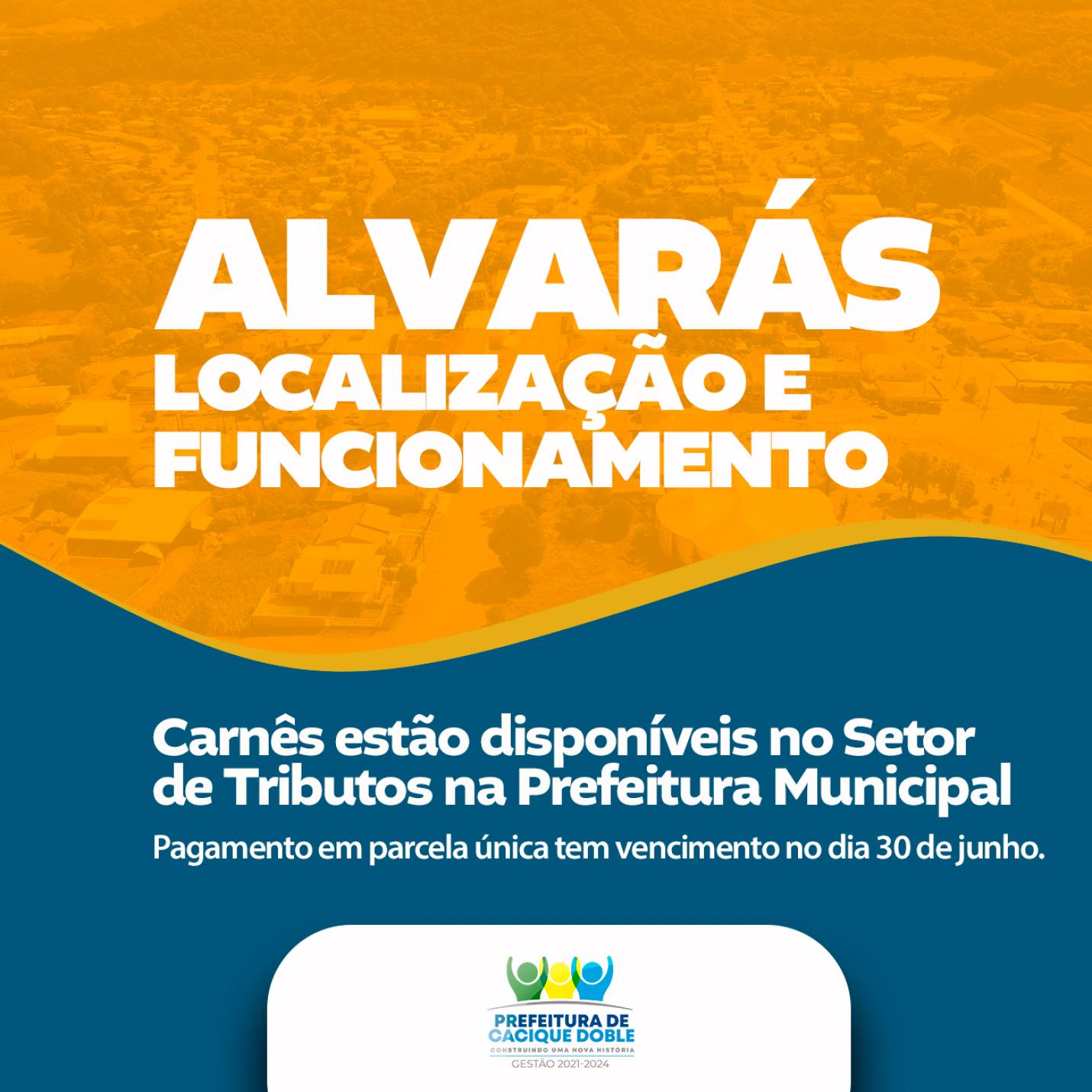 O Setor de Tributos da Prefeitura Municipal de Cacique Doble, informa aos contribuintes que os carnês para pagamento do Alvará referente ao exercício 2023 já estão disponíveis.