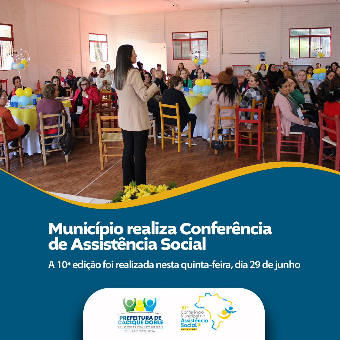 Com palestra, apresentação infantil e debates sobre diferentes eixos temáticos, a 10ª Conferência Municipal de Assistência Social de Cacique Doble, realizada durante esta quinta-feira, 29, mostrou a importância da participação popular para a deliberação de propostas e avanços das políticas públicas.