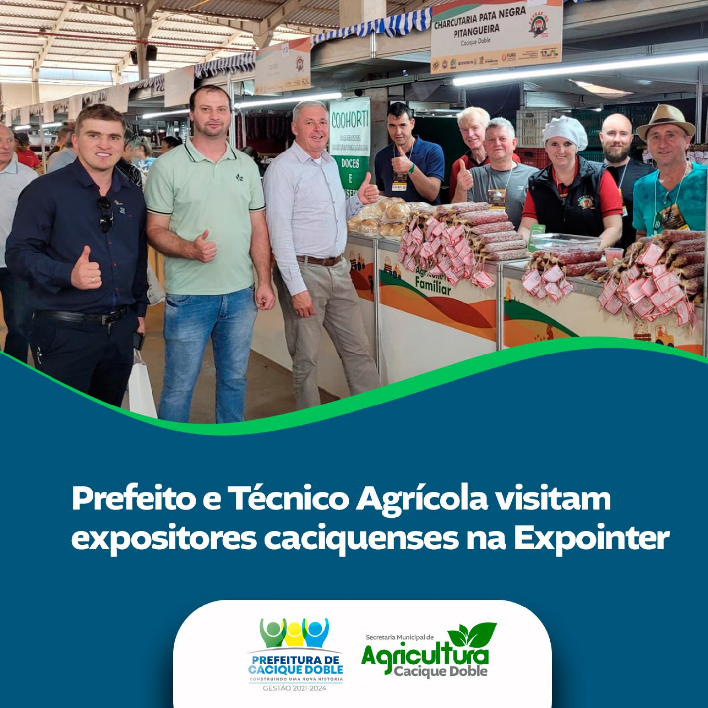 O Prefeito Luiz Ângelo Deon e o Técnico Agrícola Edivan Navarini estiveram, na última quarta-feira dia 30, fazendo a reposição de produtos das agroindústrias familiares de Cacique Doble presentes no pavilhão da Agricultura Familiar no Parque Assis Brasil em Esteio – Expointer 2023.