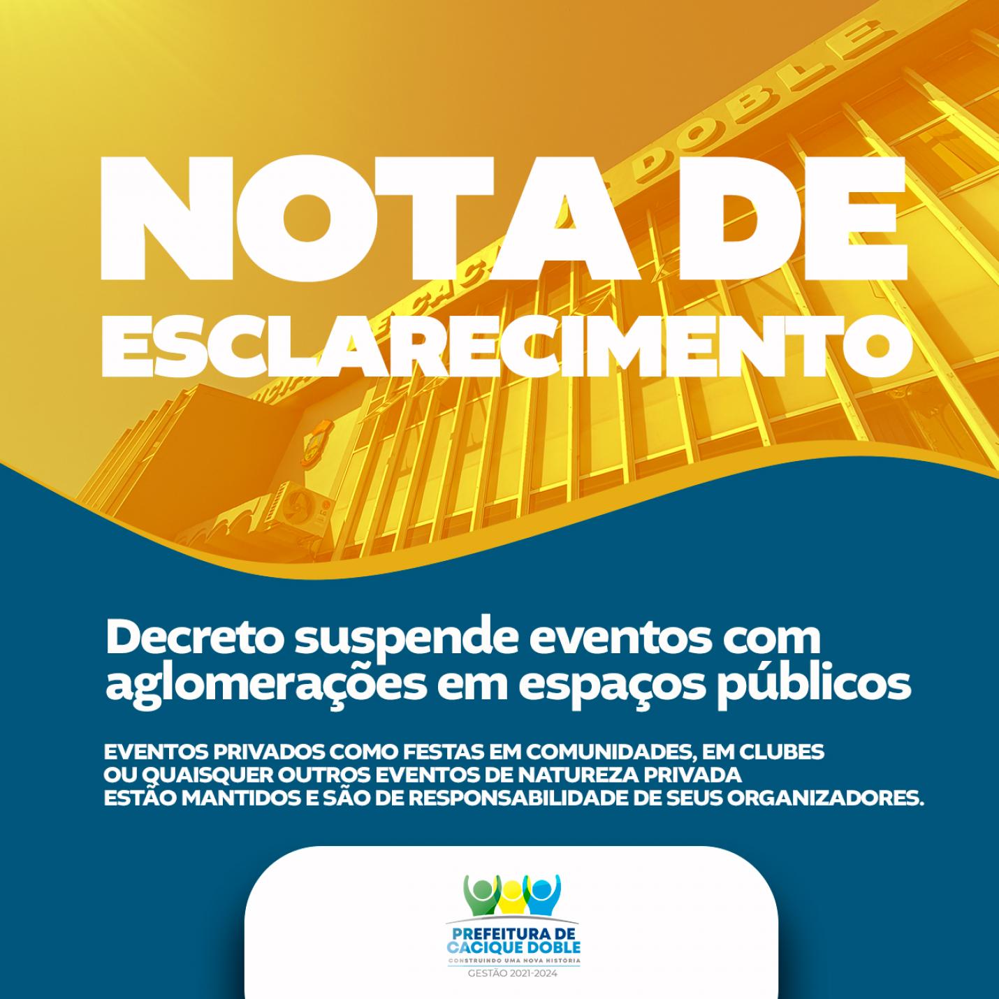 O Decreto Municipal 912/2023, de 28 de novembro de 2023, determina a SUSPENSÃO DE SHOWS COM AGLOMERAÇÕES PÚBLICAS em ESPAÇOS PÚBLICOS, para fins de prevenção da segurança dos munícipes, considerando os fatos graves ocorridos na abertura do Natal Luz e Paz.